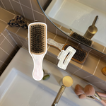 La brosse en poils de sanglier lisse la fibre capillaire, répartit le sébum sur les longueurs pour une brillance naturelle et réduit les frisottis sans agresser la chevelure.