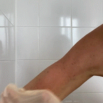 2. N’utilisez ni gel douche, ni savon, ni huile avant l’exfoliation. Le gant fonctionne uniquement sur une peau propre, sans produits.