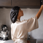 La charlotte en soie maintient l’hydratation des cheveux, évite les frottements et vous accompagne de nuit comme de jour.