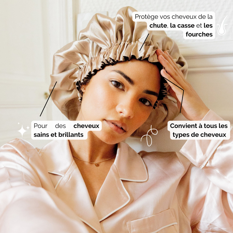 La douceur de la soie aide à protéger vos cheveux des frictions la nuit, à réduire la casse, les fourches et la chute.